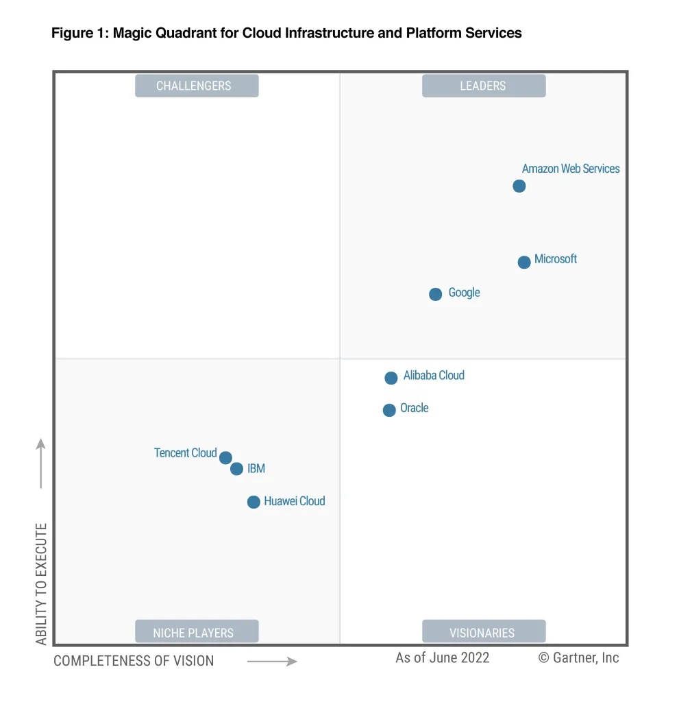 AWS was named a Leader in the 2022 Gartner Cloud Infrastructure & Platform Services (CIPS) Magic Quadrant for the 12th Consecutive Year (source)