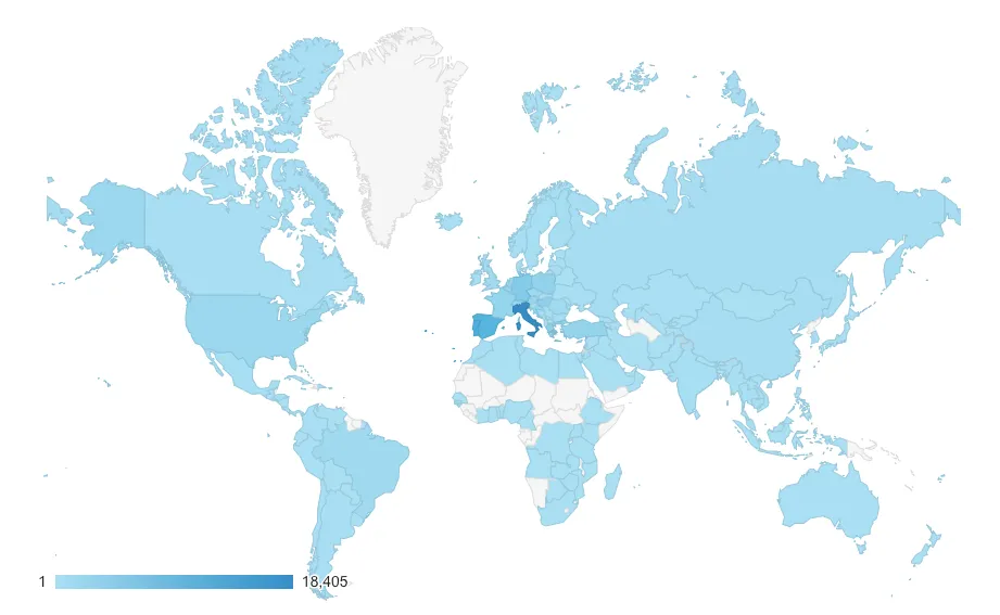 Density map of people using Papaya around the world – higher density in our headquarters (Italy), where the service started growing (Google Analytics).
