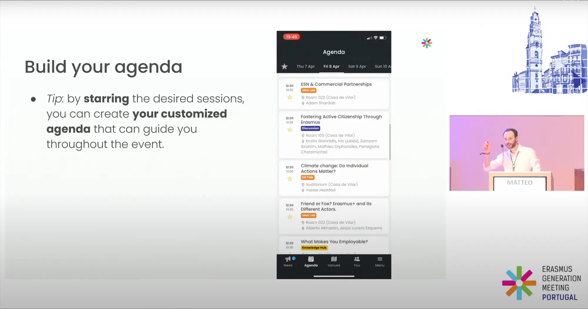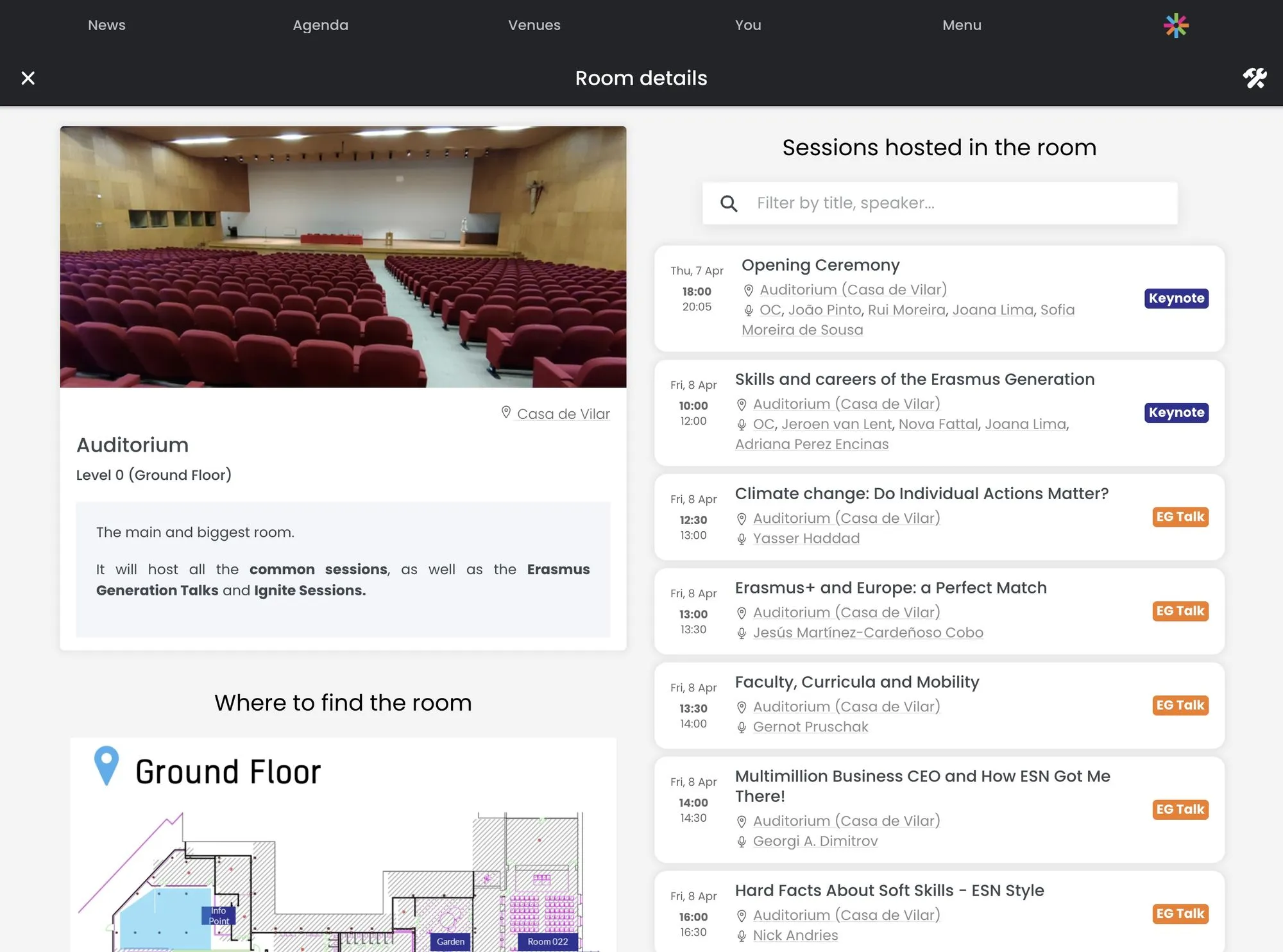 L’Erasmus Generation Meeting ha incluso anche diversi momenti sociali e celebrativi, come una coinvolgente flag parade, una cena di gala e tanto altro. Abbiamo quindi colto l’occasione per aggiungere alla piattaforma una mappa completamente navigabile, tramite la quale ottenere tutte le informazioni per raggiungere i diversi luoghi dell’evento. Infine, un feed di notizie all’interno dell’app ha permesso ai partecipanti di rimanere aggiornati su tutte le comunicazioni, suggerimenti e informazioni importanti.