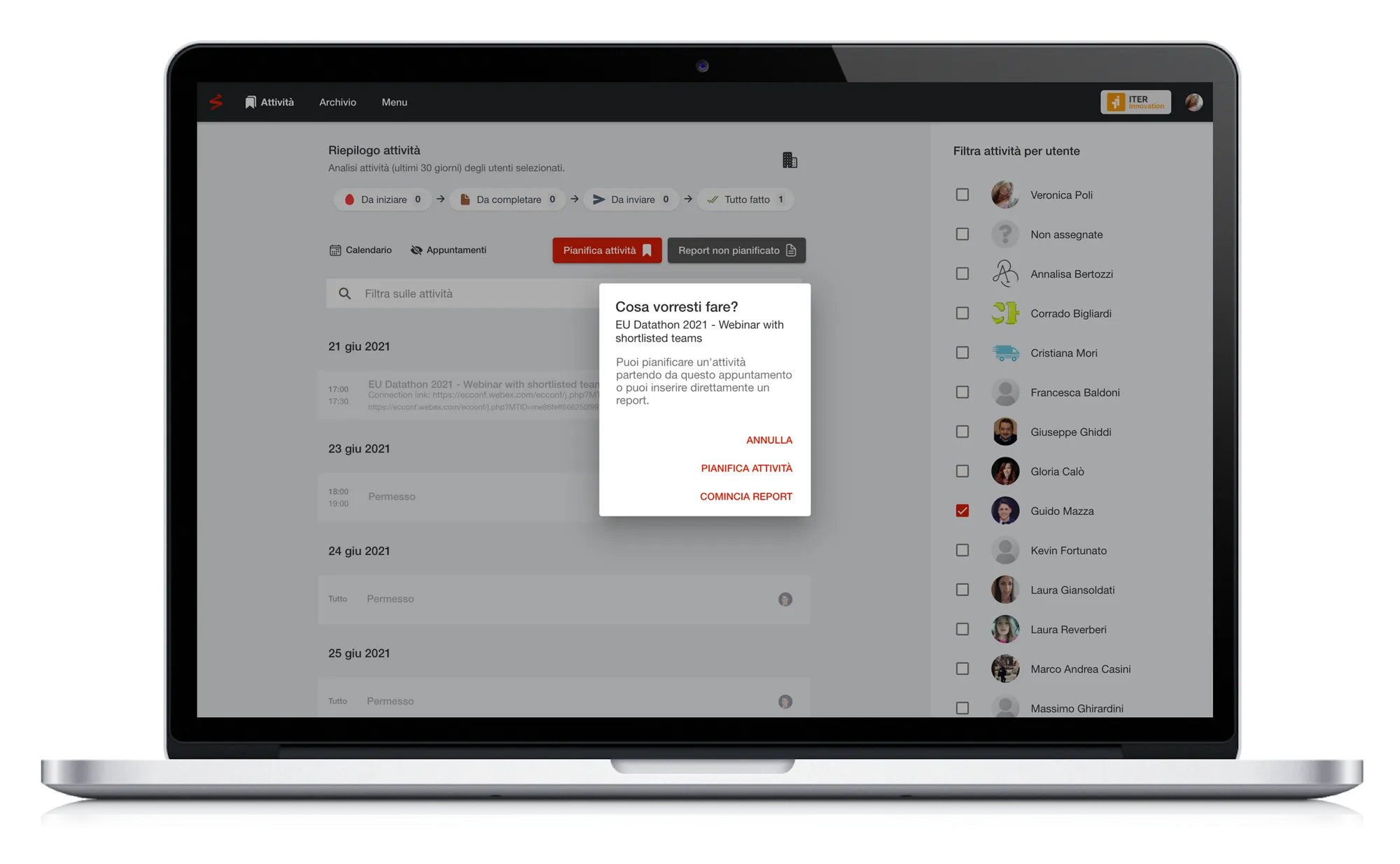 Noi di ITER IDEA siamo i primi utilizzatori di questi servizi al fine di monitorare i tempi e le attività svolte sui nostri progetti; siamo talmente convinti delle potenzialità che abbiamo deciso di investire nello sviluppo della piattaforma, potenziandola e rendendola disponibile a un target sempre più ampio.