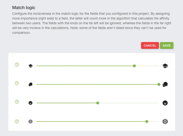 anyone can now quickly configure what is more important to consider when matching users for a particular project: just slide the pins left or right!