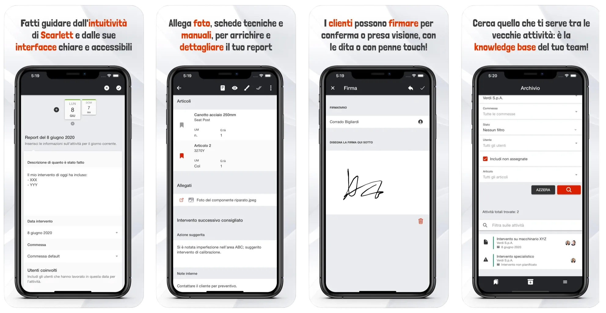 Scarlett app: compilazione report di intervento.