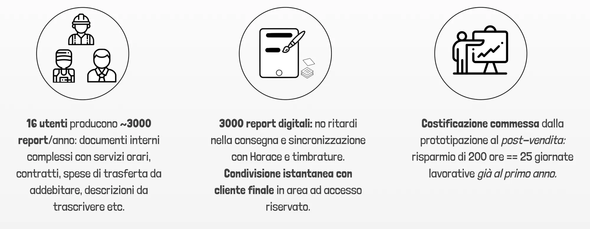 Non sarebbe possibile ad esempio misurare KPIs di produzione, costificare in maniera precisa un prototipo, digitalizzare il lavoro del back-office e quantificare l’impatto dei costi delle attività di post vendita e assistenza.
